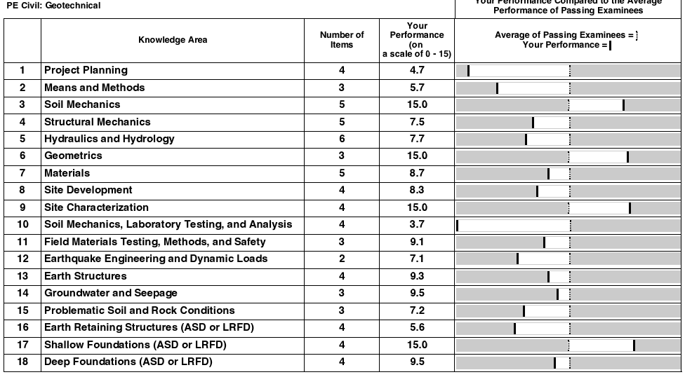 한 회사를 1년 다니다가 이직을 하고 한동안 PE라는 시험을 잊고 지냈다. 그러다가 갑자기 NCEES에서 2024년 4월부터 기존 시험 과목을 대대적으로 바꾼다고 했다. 이전처럼 오전에는 전반적인 토목과목을 보고 오후에만 지반쪽을 보는 것이 아니라, 오전오후 모두 지반으로 바뀐다는 것이였다. 이 소식을 듣고, 혹시 오전오후가 다 지반이면 시험 난이도가 더 올라갈거라고 생각했다. 그래서 부랴부랴 2024년 1월 시험을 보기로 했다. 그리고 또 한 번 시험에 떨어졌다. 아래보면 오전과목은 거의 반도 못 맞췄다. 무슨 이유에서인지 난이도가 상당히 높았다. 한국 시험들과는 다르게 미국은 시험스타일이 바뀌는 시점이 어려워지는 듯 했다. 이 시험을 떨어지고는 거의 PE를 패스하기는 힘들거라 생각했다. 마침 회사업무가 진짜 말도 못하게 바뻐서 진짜로 공부할 시간이 없었다.